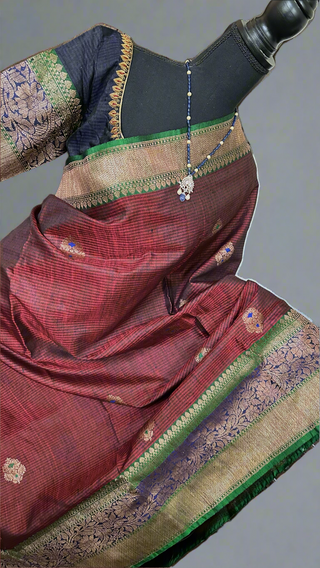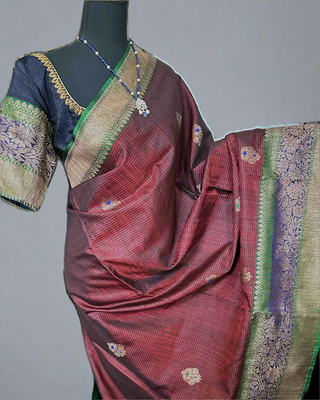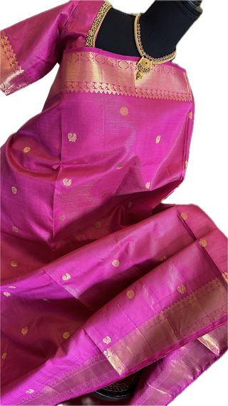 Pure real zari jamdhani weaving cotton pure saree with prestitched blouse