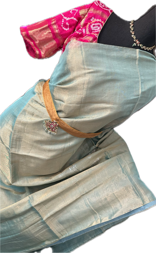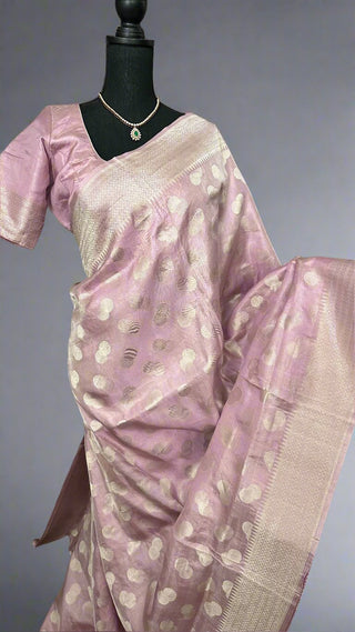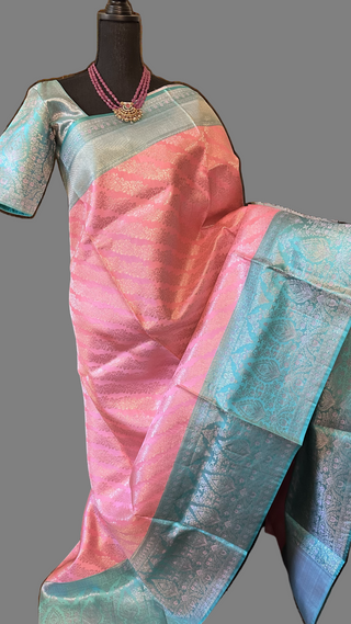 Pastel Pink Pure Beneras silver zari tissue silk saree online shopping with stitched blouse usa