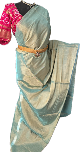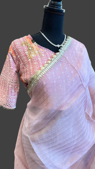 Hand embroidered georgette tissue saree with stitched blouse- party wear