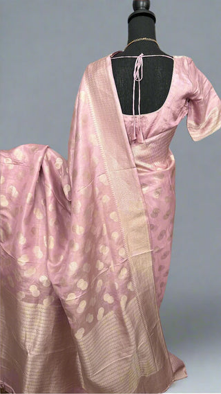 Lotus pink Benerasi Tussar Katan silk saree online shopping with prestitched blouse