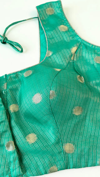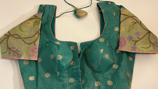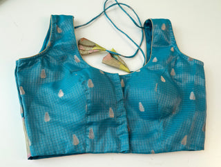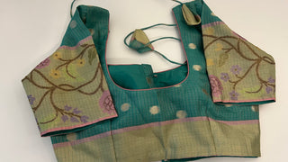 Teal Tissue Zari Kota Silver zari Readymade Blouse with Ready to Ship Online USA