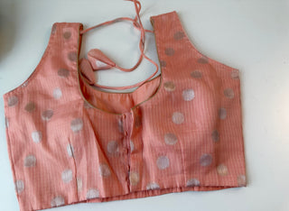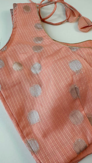 Peach Zari Kota Silver zari sleeveless Blouse Readymade Blouse with Ready to Ship Online USA