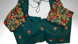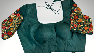 Tussar pure silk Evergreen color Embroidered Readymade Blouse with Ready to Ship Online USA