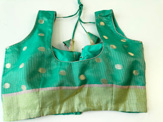 Pastel Green Zari Kota Silver zari sleeveless Blouse Readymade Blouse with Ready to Ship Online USA