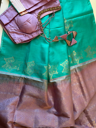 Pure teal blue green soft silk saree online usa Pastel soft silk saree usa