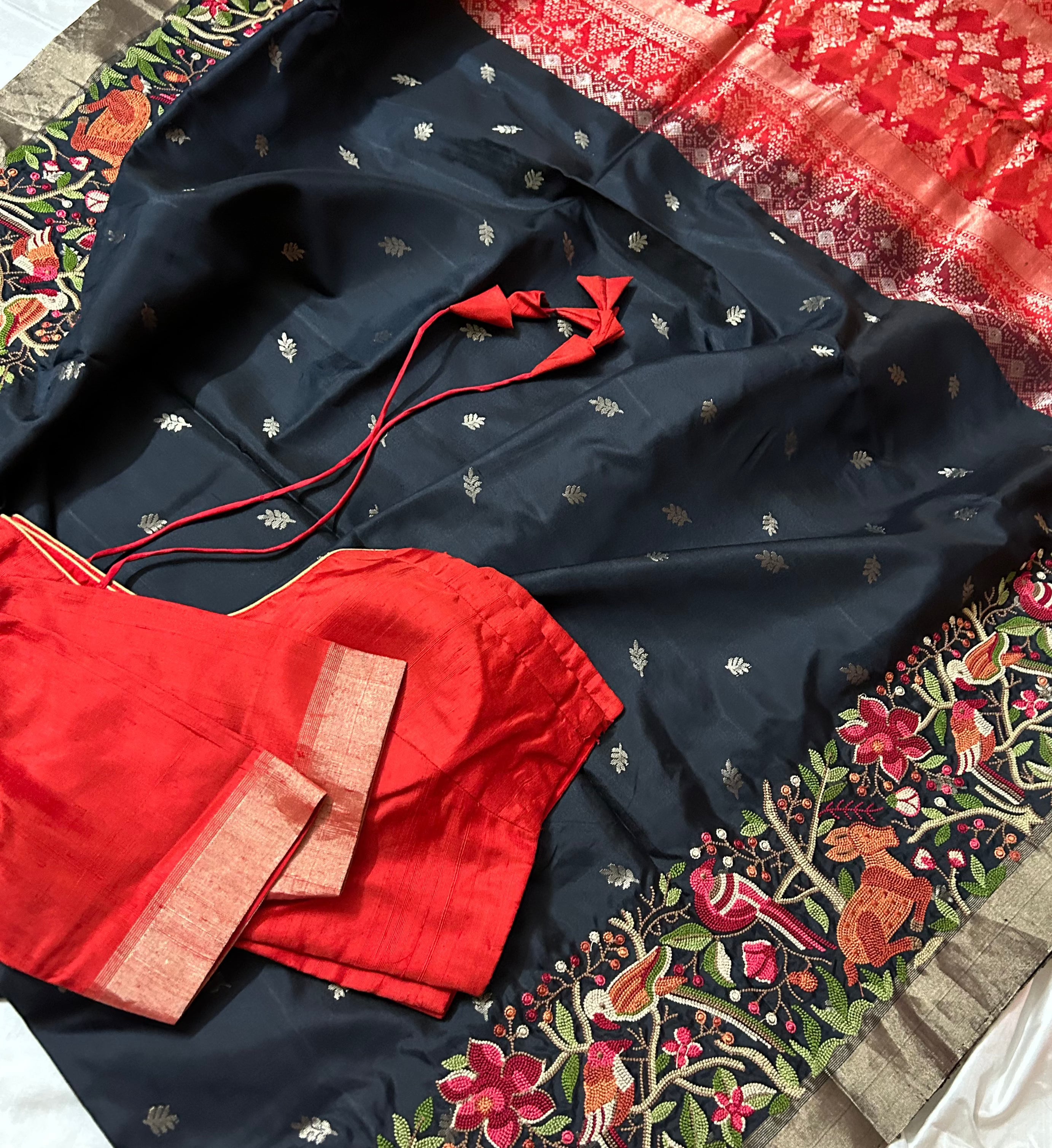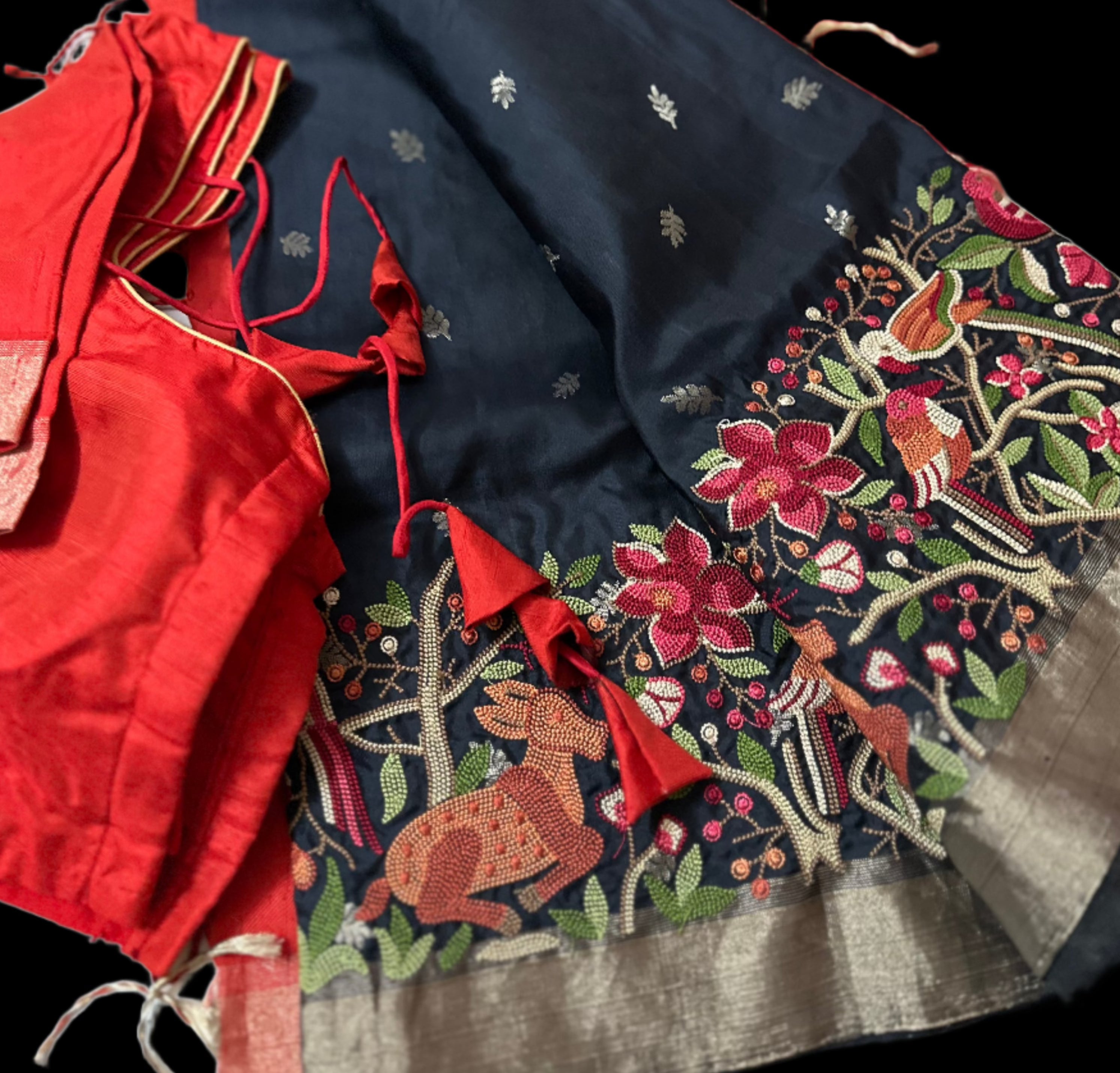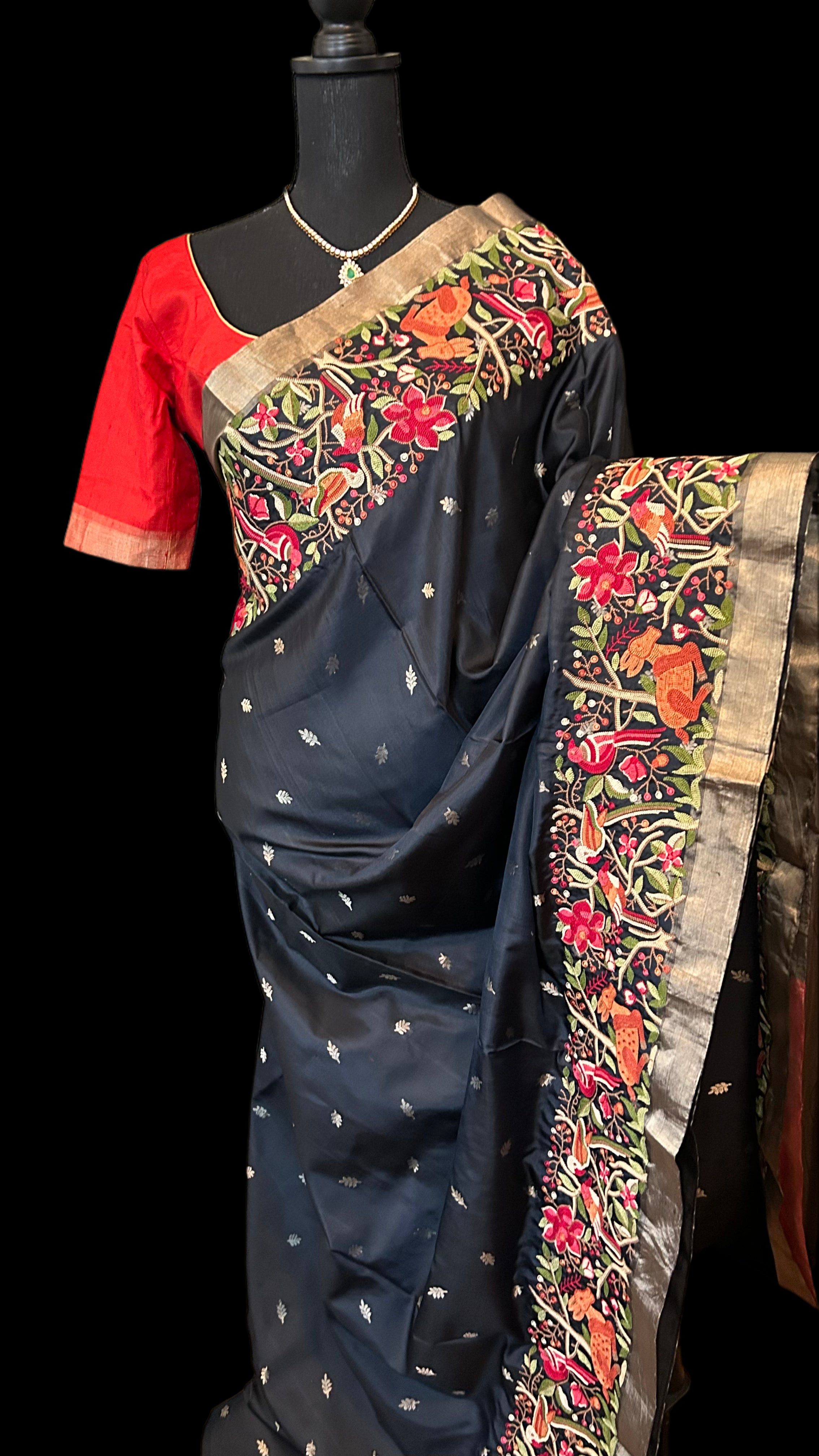 Hand embroidered black pure soft silk   prestitched blouse