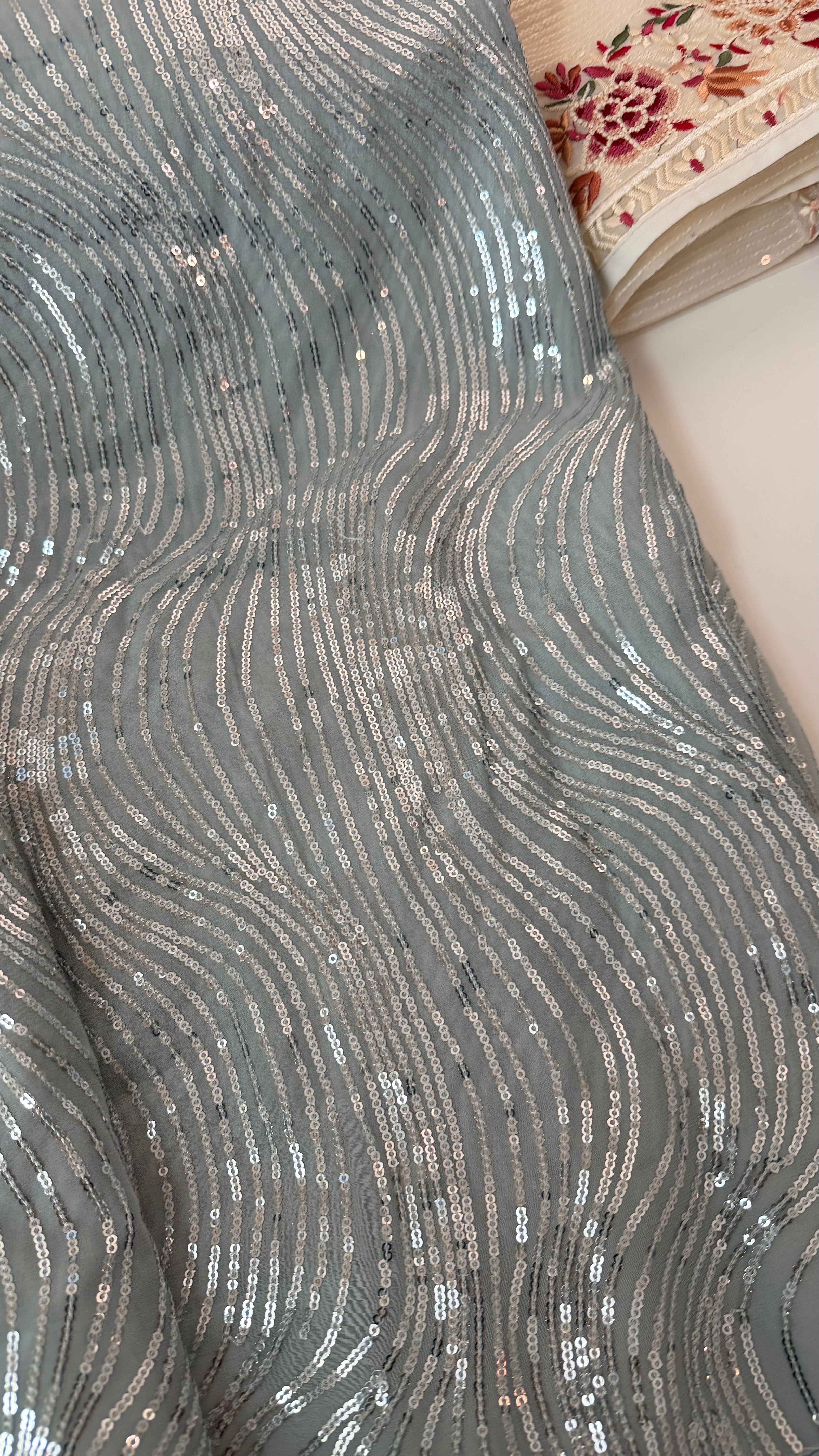 Grey sequin saree usa pure georgette sequin saree